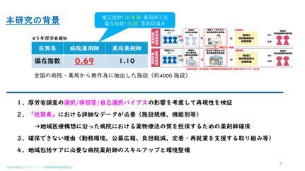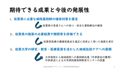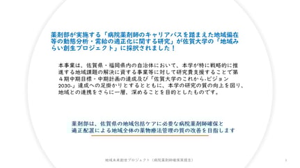 病院薬剤師の不足、偏在の解消などの課題解決に向けて、佐賀県と共同し病院薬剤師確保対策に向けた疫学調査を行います。この取り組みは、本学の「地域みらい創生プロジェクト」に採択されました。